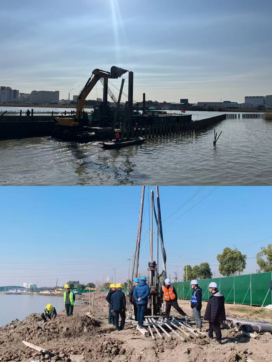【概要描述】2月13日,在揚州水利建筑程有限責任公司承建的吳淞江(江蘇段)整治工程(昆山市)施工八標建設現(xiàn)場機械轟鳴、車輛穿梭,工人們分工合作、干勁十足,現(xiàn)場一片繁忙。 項目部在春節(jié)放假前搶抓時間完成了水泥攪拌樁、管樁、灌注樁試樁,充分利用假期時間提高強度以滿足檢測要求。2月9日管理人員到崗后,實時調整進度計劃,精心組織各專業(yè)施工班組到位,將3公里施工區(qū)域劃分為9個工區(qū),護岸樁基目前進入全面鋪開施工階段,水