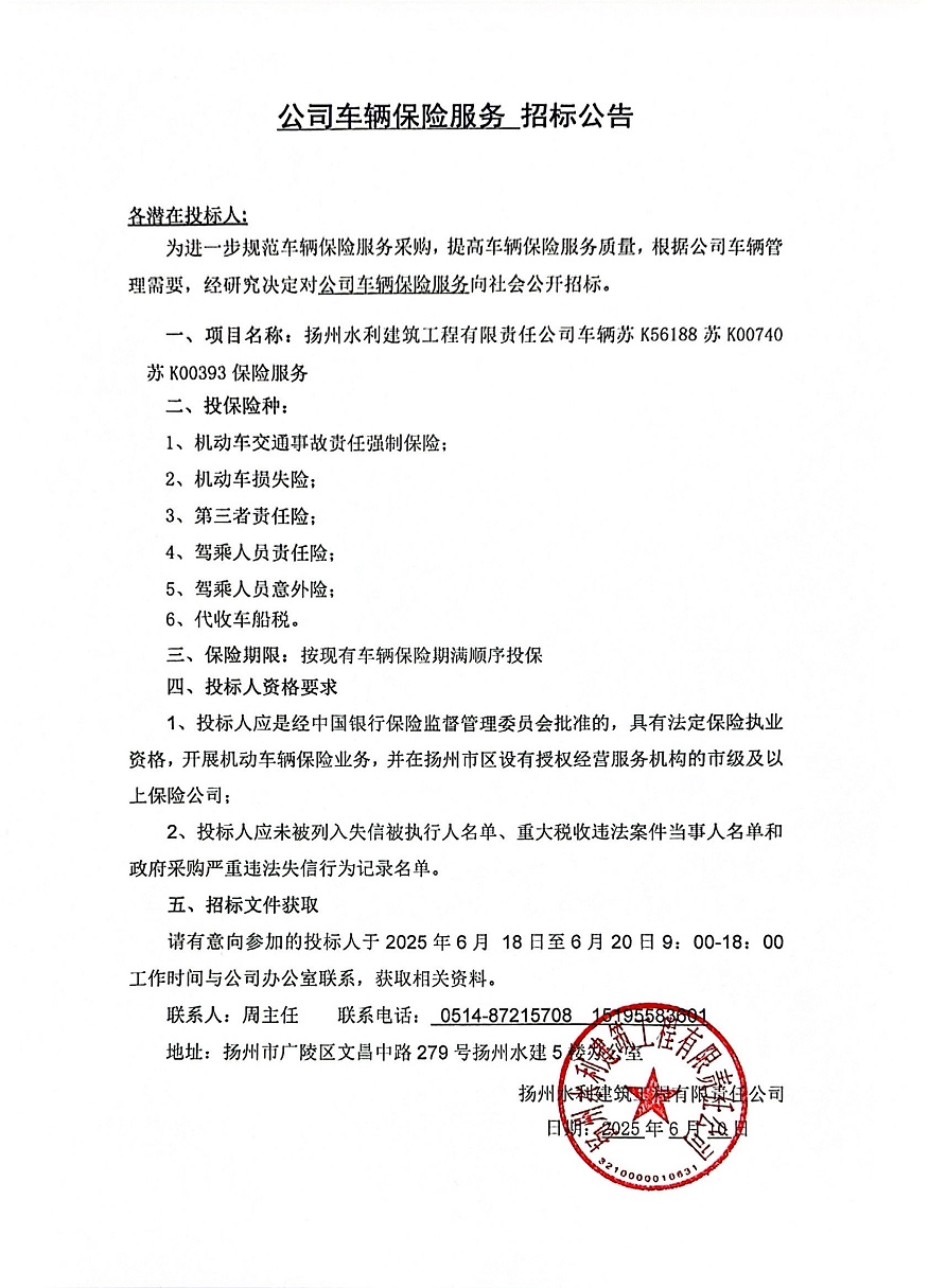 公司車輛保險(xiǎn)服務(wù)招標(biāo)公告