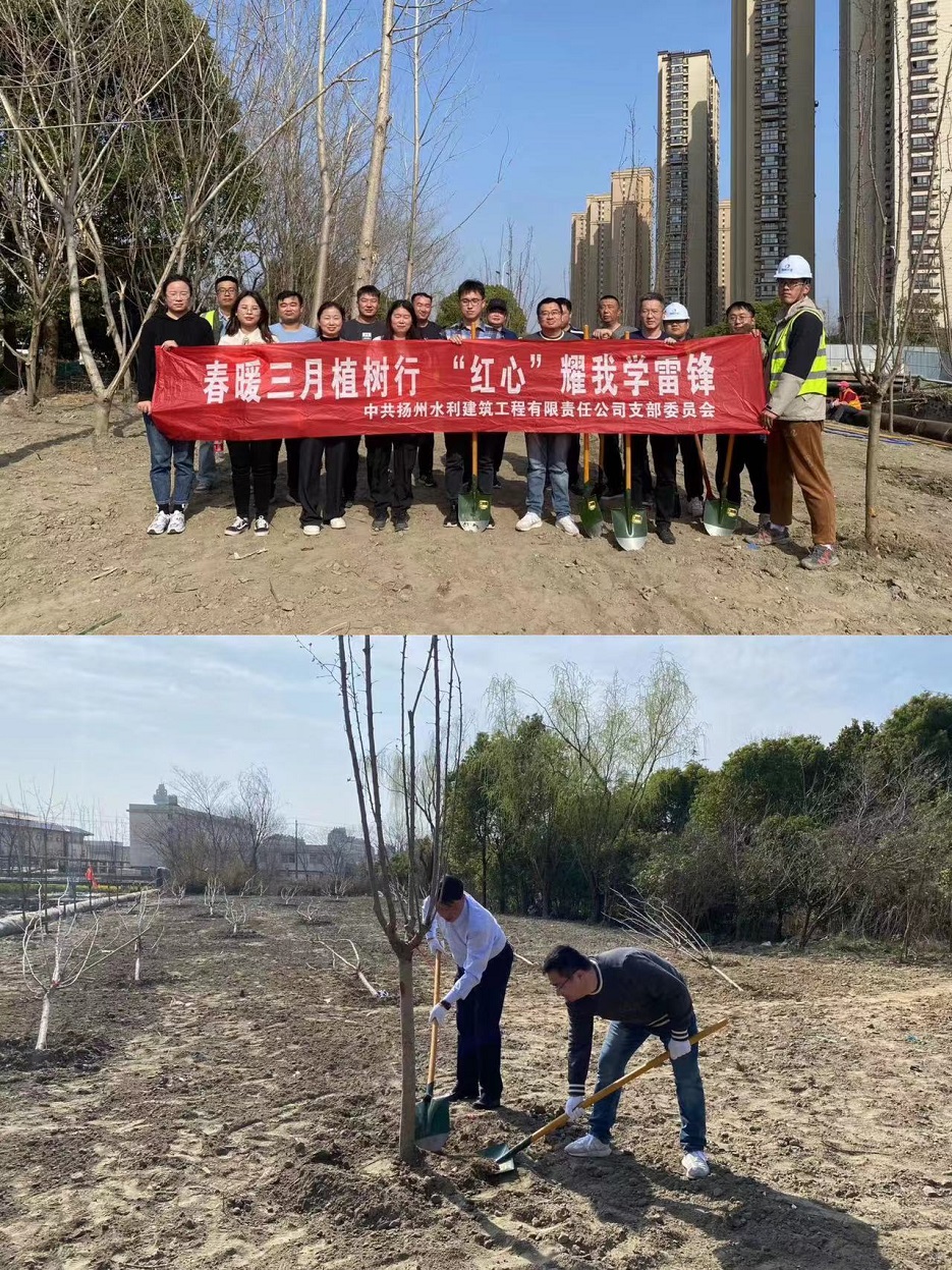 【概要描述】為貫徹落實黨的二十大精神,進(jìn)一步推進(jìn)生態(tài)文明建設(shè),弘揚雷鋒精神,結(jié)合“學(xué)雷鋒志愿服務(wù)集中行動月”活動安排,3月10日下午,揚州水利建筑工程有限責(zé)任公司黨支部聯(lián)合農(nóng)投集團(tuán)團(tuán)支部在公司開發(fā)區(qū)EPC項目部二橋河整治施工現(xiàn)場組織開展“春暖三月植樹行‘紅心’耀我學(xué)雷鋒”主題植樹活動。支部全體黨員、入黨積極分子和團(tuán)員參加活動。 植樹現(xiàn)場,大家熱情高漲、干勁十足,分組勞動、揮鍬鏟土、扶苗提樹、取水澆灌,道道工