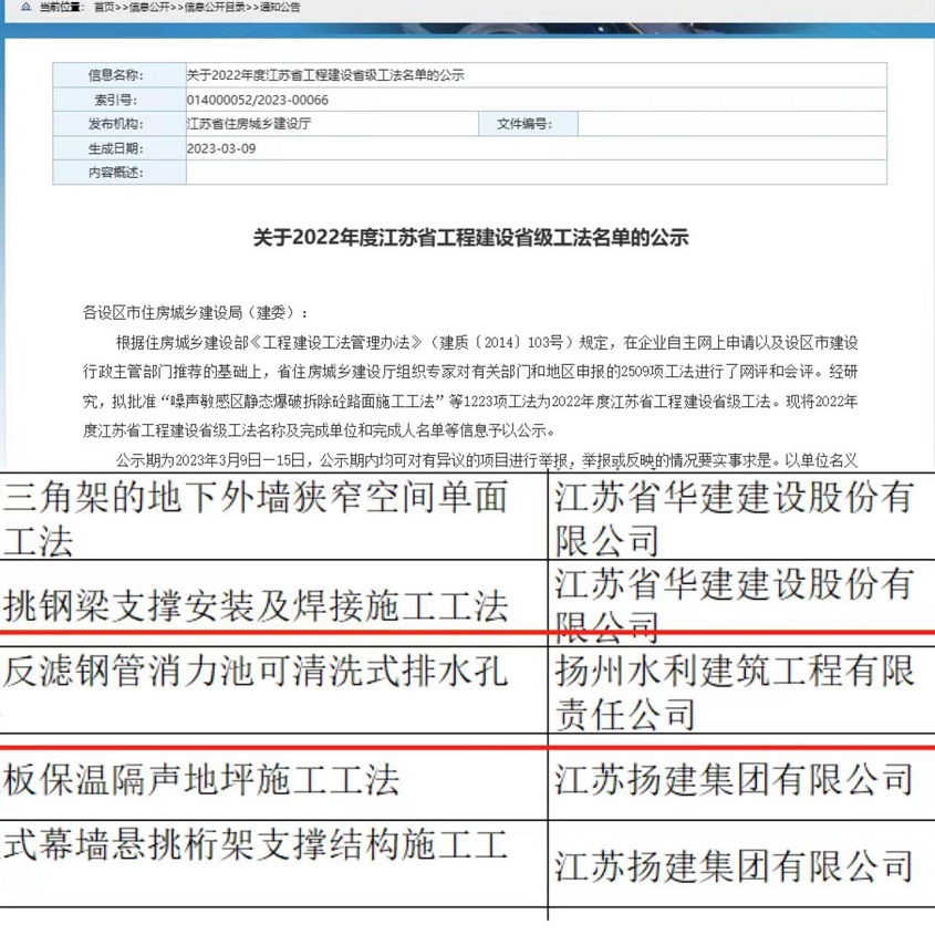 公司一項(xiàng)工法獲評(píng)2022年度江蘇省工程建設(shè)省級(jí)工法